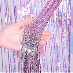 Занавес дождик 1 х 2 м, голография, Розовый Занавес дождик 1 х 2 м, голография, Розовый