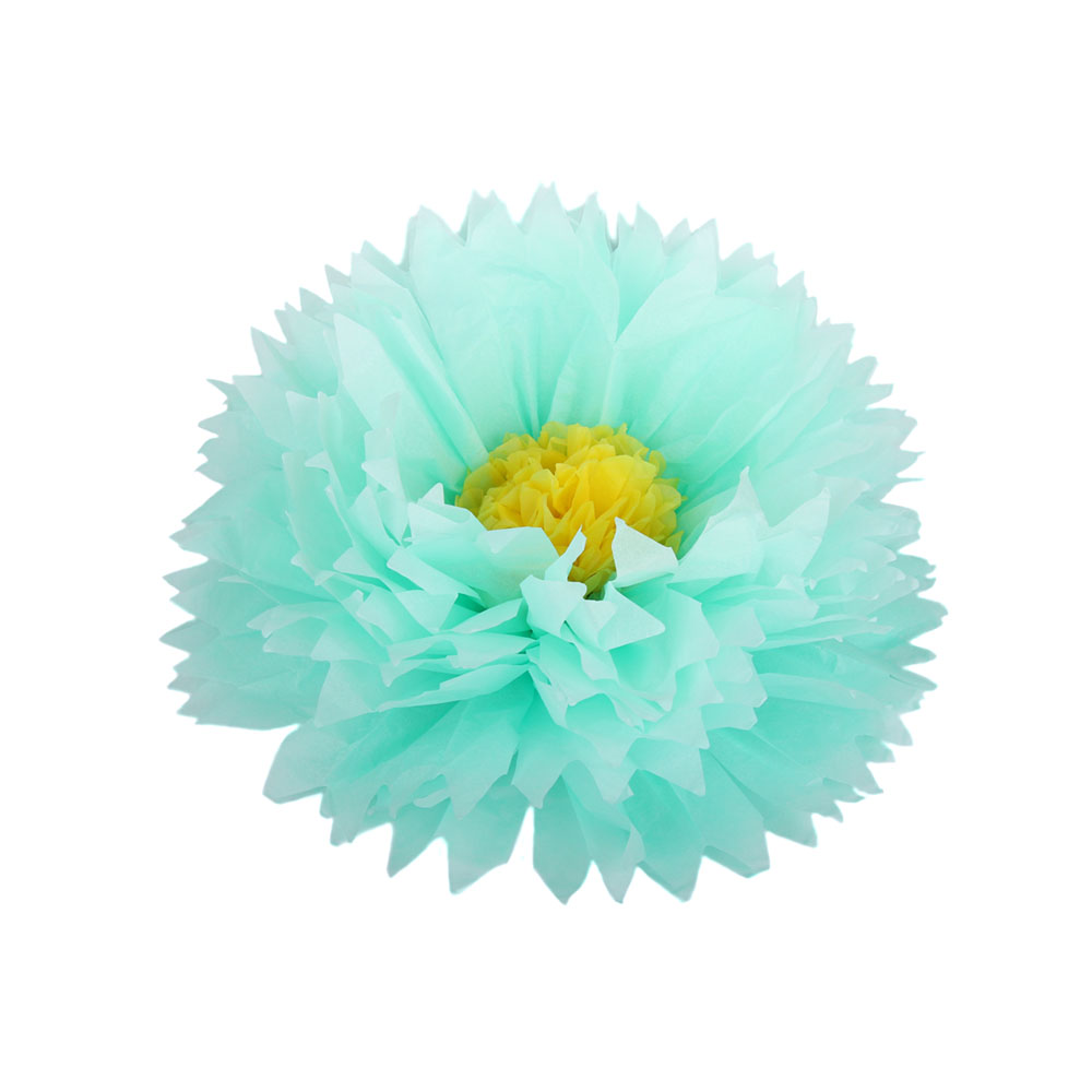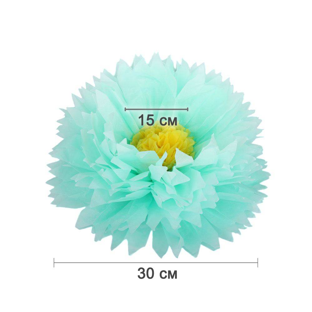 Бумажный цветок 30 см мятный+желтый
