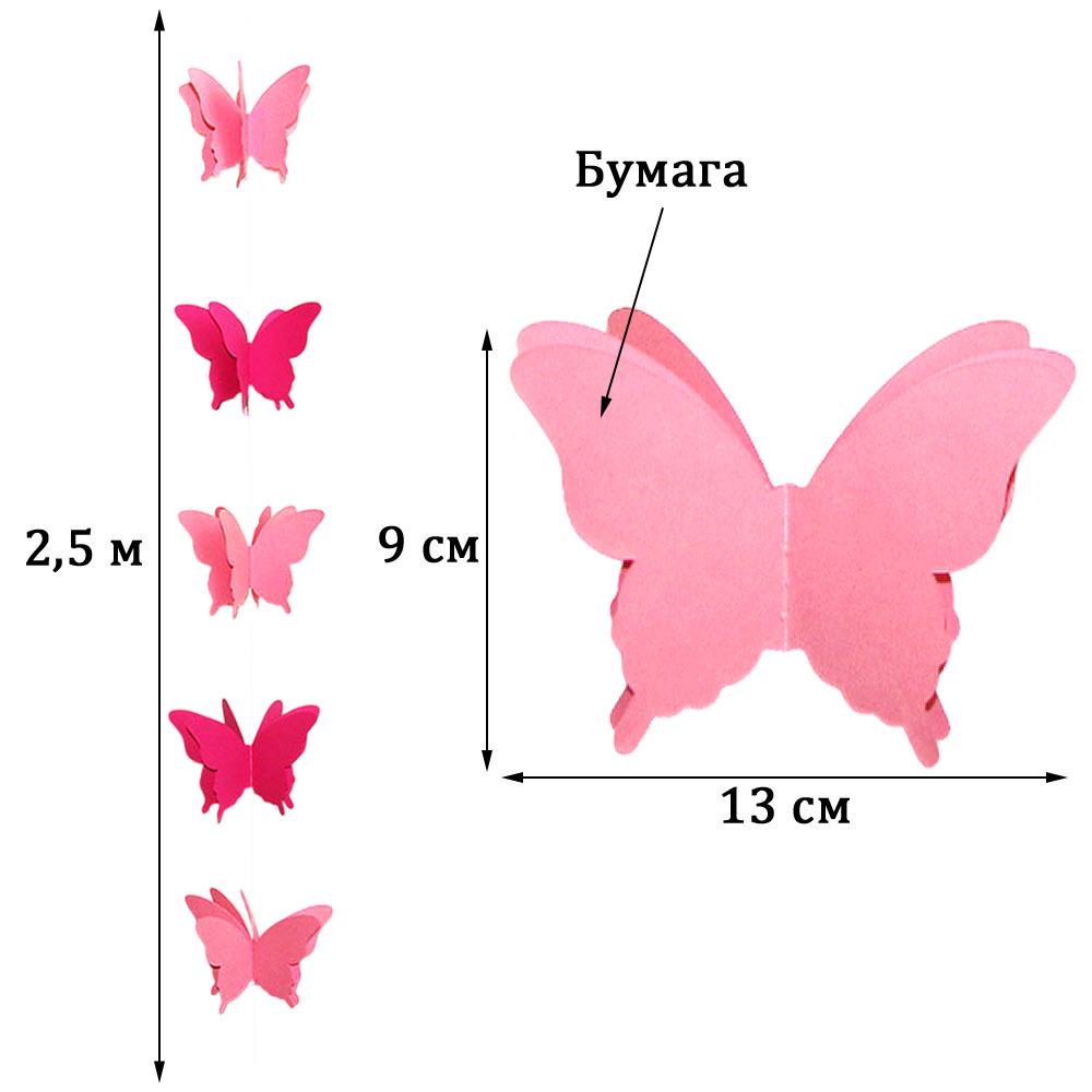 Гирлянда "Бабочки" 13х9см 2,5м, малиновый+розовый