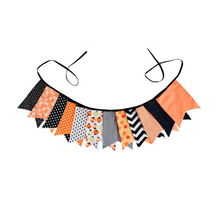 Гирлянда состоит из 12 флажков, общая длина составляет 3,4 м, расстояние между флажками 3 см, длина матерчатых флажков 2,1 м, длина лямок с обеих сторон по 50 см