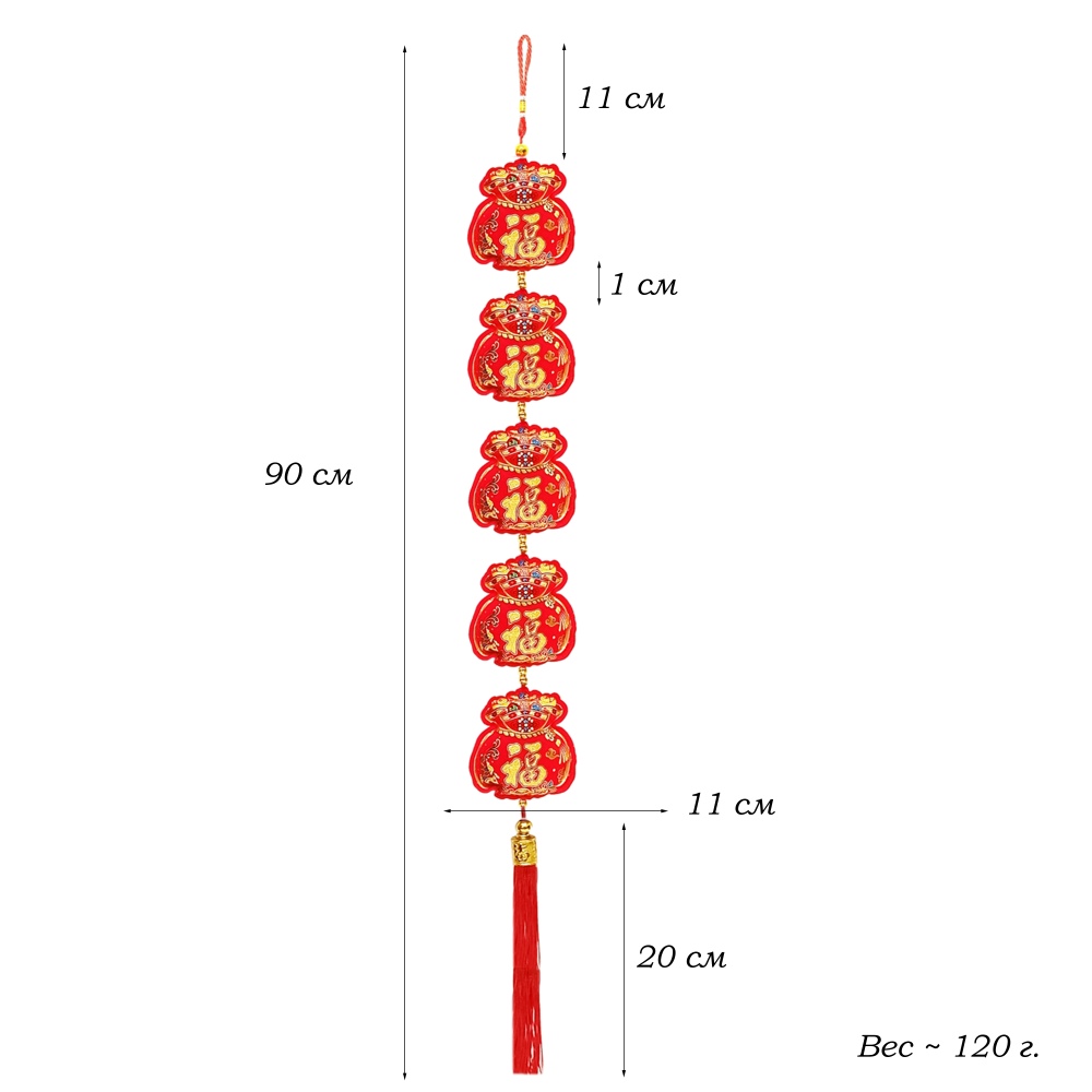 Китайская подвеска 11х90-95см, Денежные мешки
