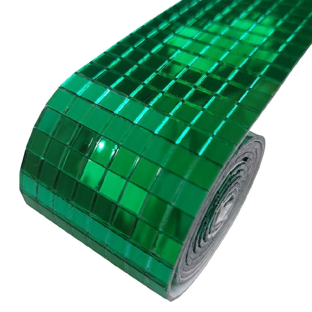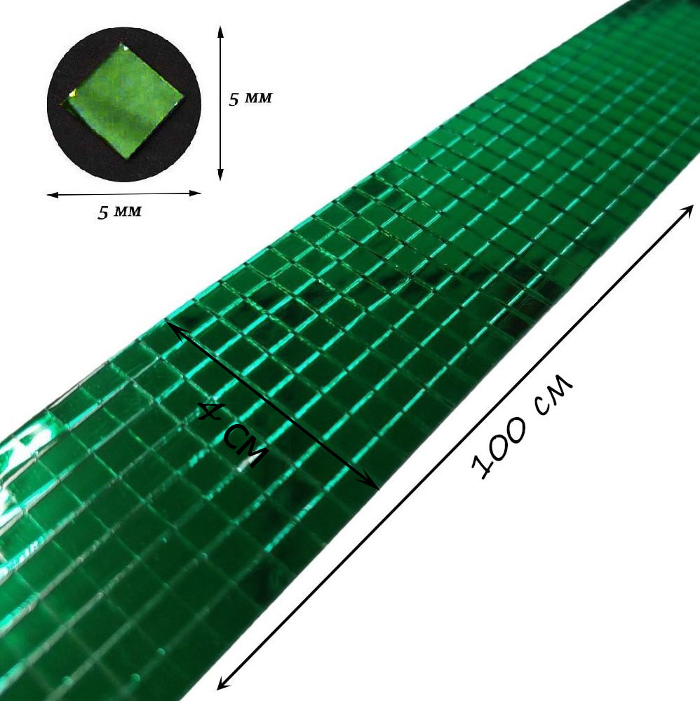 Лента самоклеящаяся зеркальная мозаика стекло, 4см х 1м 5х5мм, зеленый