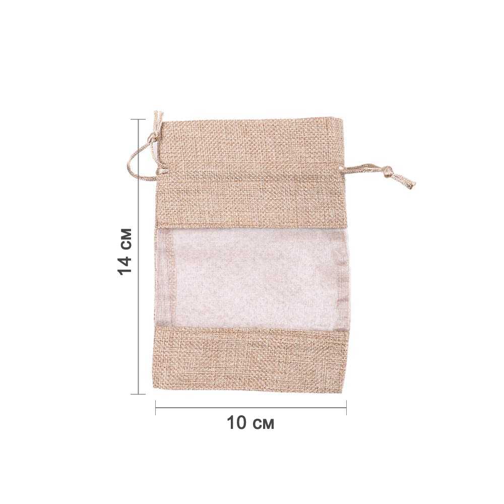 Мешочек из мешковины и органзы 10 × 14 см