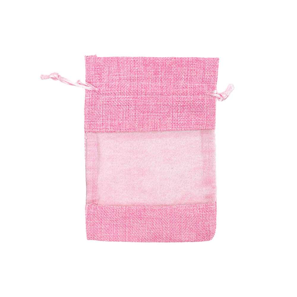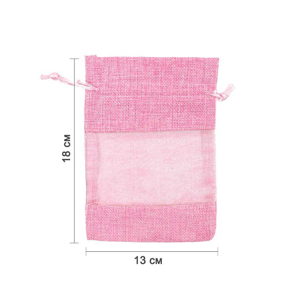 Мешочек из мешковины и органзы 13х18 см розовый