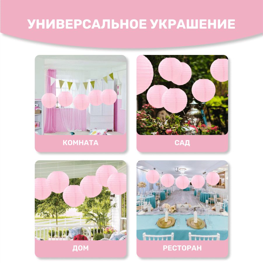 Комплект подвесные фонарики 30 см х 8 шт, розовый