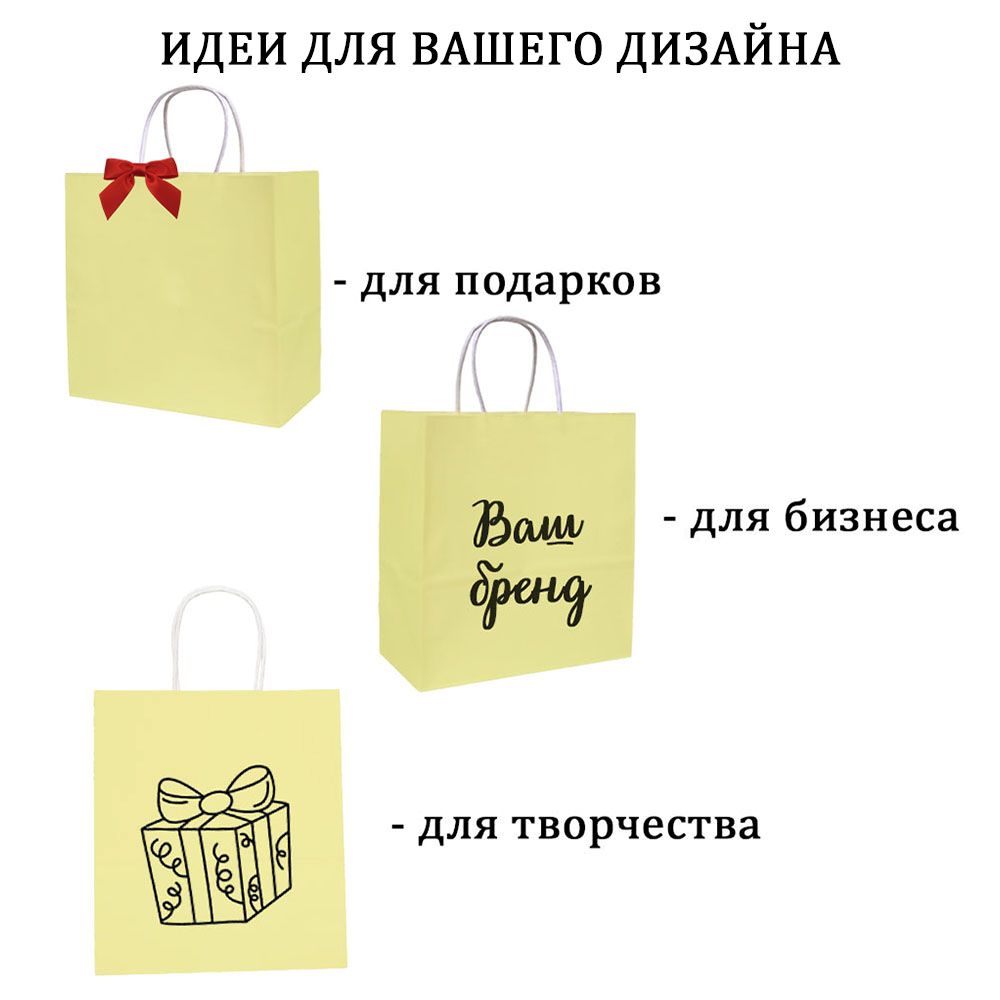 Подарочный пакет из крафтовой бумаги пастельного оттенка с белыми бумажными ручками и белой внутренней стороной.