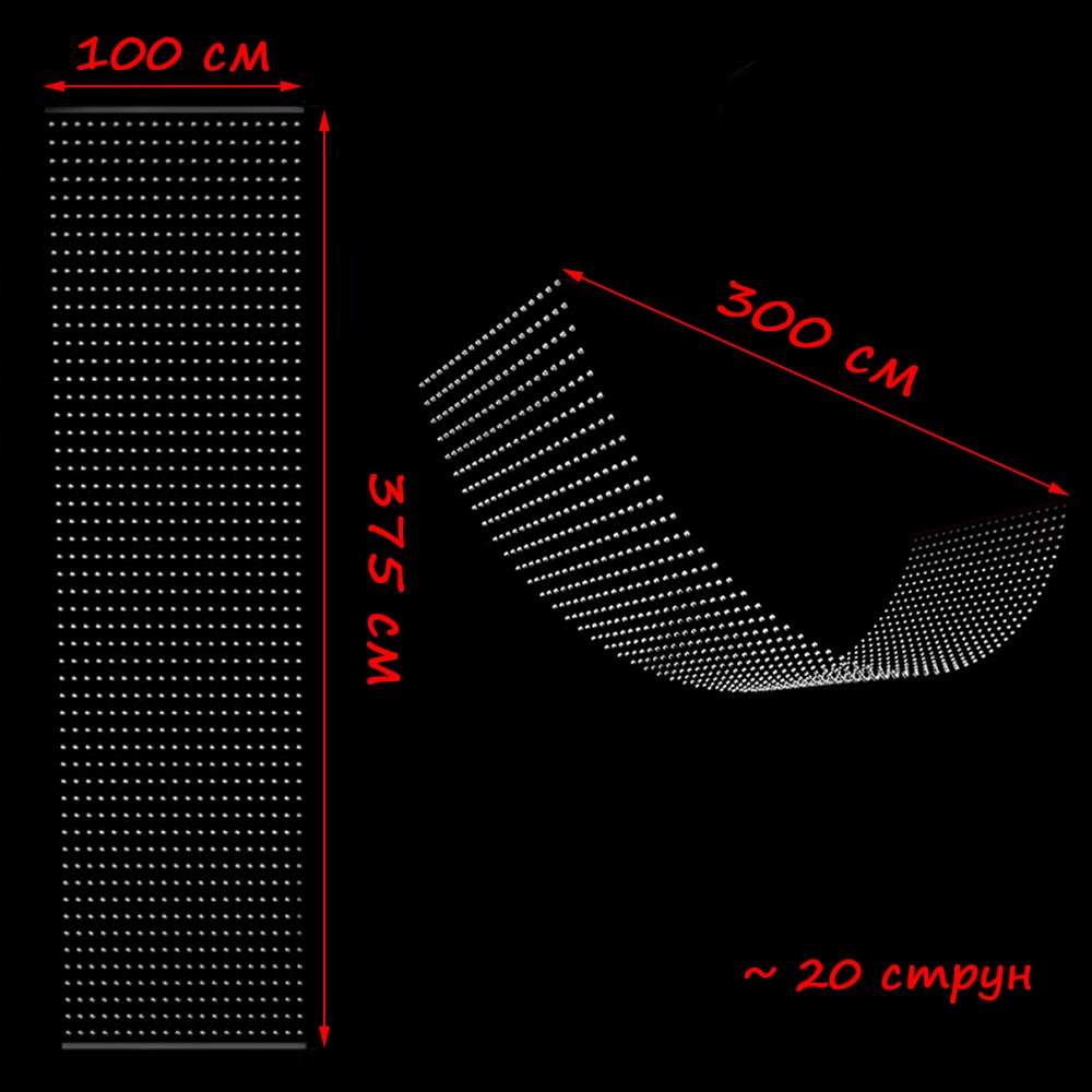 Подвеска создает плотную мерцающую завесу для зонирования пространства, оформления свадеб, фотостудий и жилых интерьеров. Игра света и граней делает подвеску невероятно динамичной и живой.