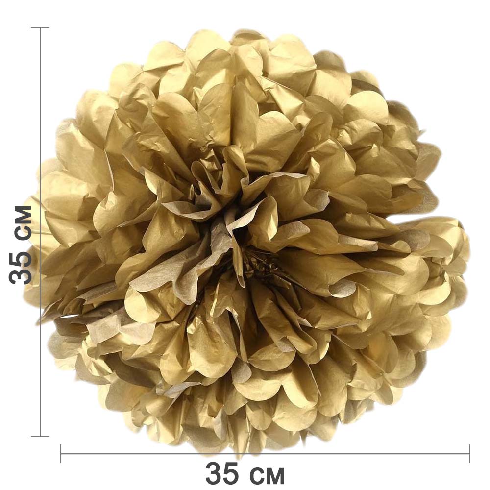Золотой бумажный помпон диаметром 35 см — стильное и лёгкое украшение для праздников, фотозон, витрин и интерьера. Отлично подойдёт для дней рождений, свадеб, вечеринок и тематических мероприятий.