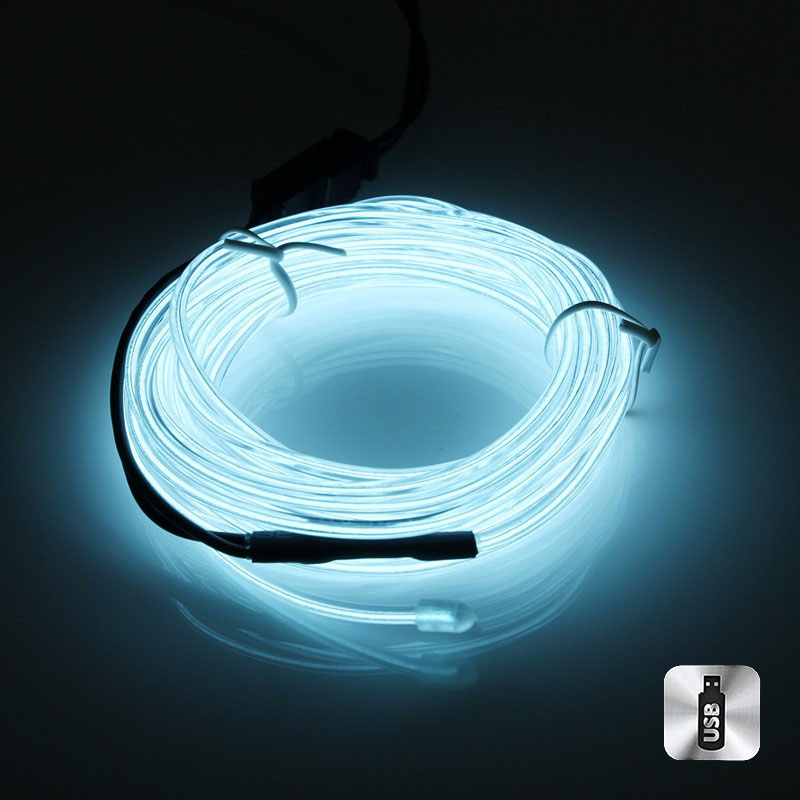 Шнур неоновый светящийся от USB 3 м, светло-розовый