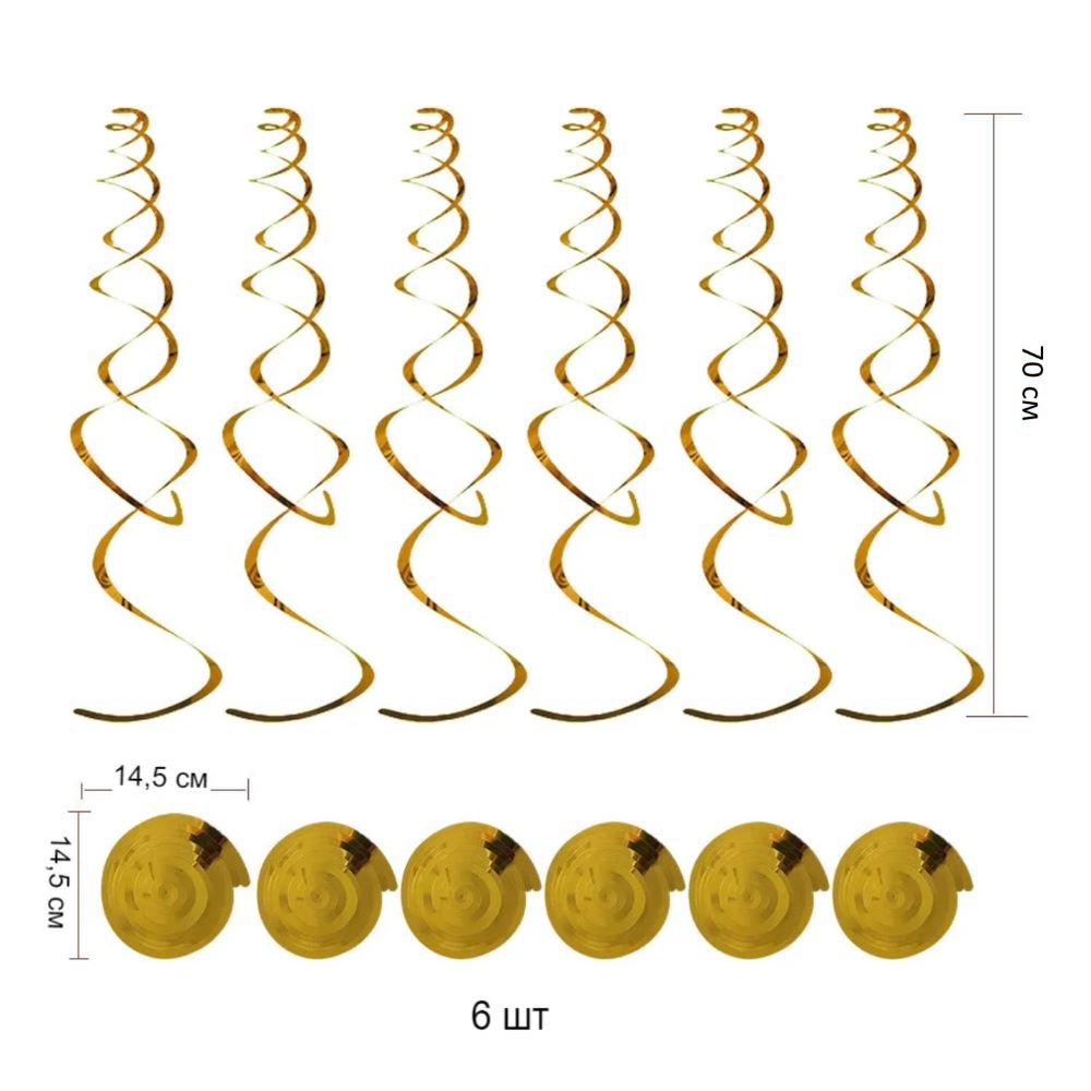 Спираль пластиковая 70см 6шт, золото