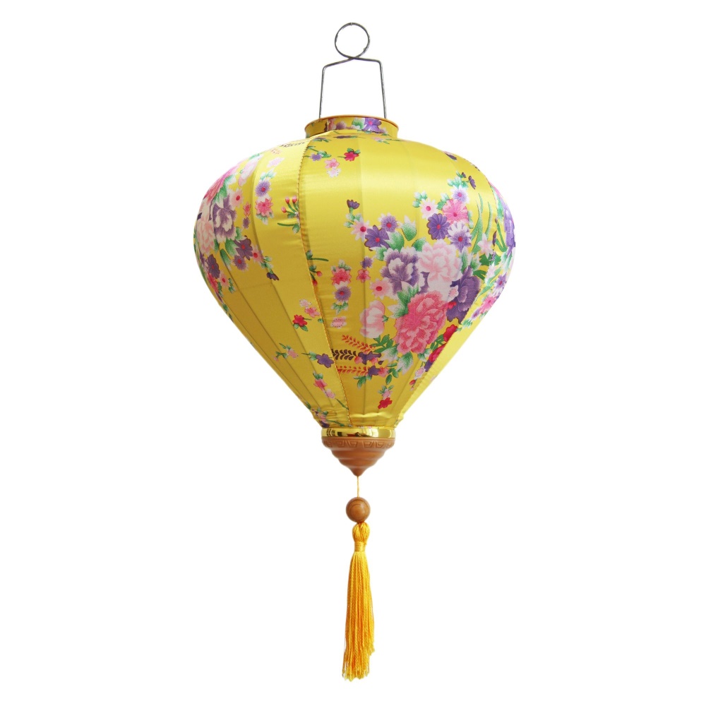 Коллекция подвесных фонарей ручной работы. Конструкция из шелкового полотна с цветочным орнаментом, металлического каркаса и подвесной системы. Модель в желтой цветовой гамме, с цветочным узором.