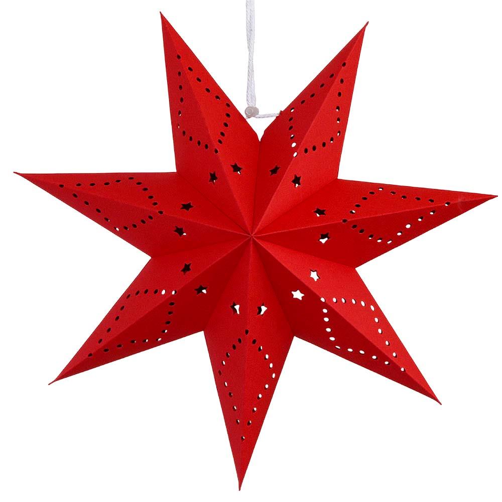 Звезда семиконечная бумажная 35 см, Звезды и точки, красный